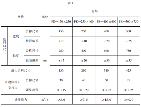 (10)測(cè)定較大給料尺寸。在易為公稱值時(shí),將符合表1中規(guī)定的較大給料尺寸的待破碎單塊物料投入運(yùn)轉(zhuǎn)的破碎腔內(nèi),觀察整個(gè)破碎過程是否打滑、外吐,從而確定其較大給料尺寸能否達(dá)到本標(biāo)準(zhǔn)的規(guī)定。